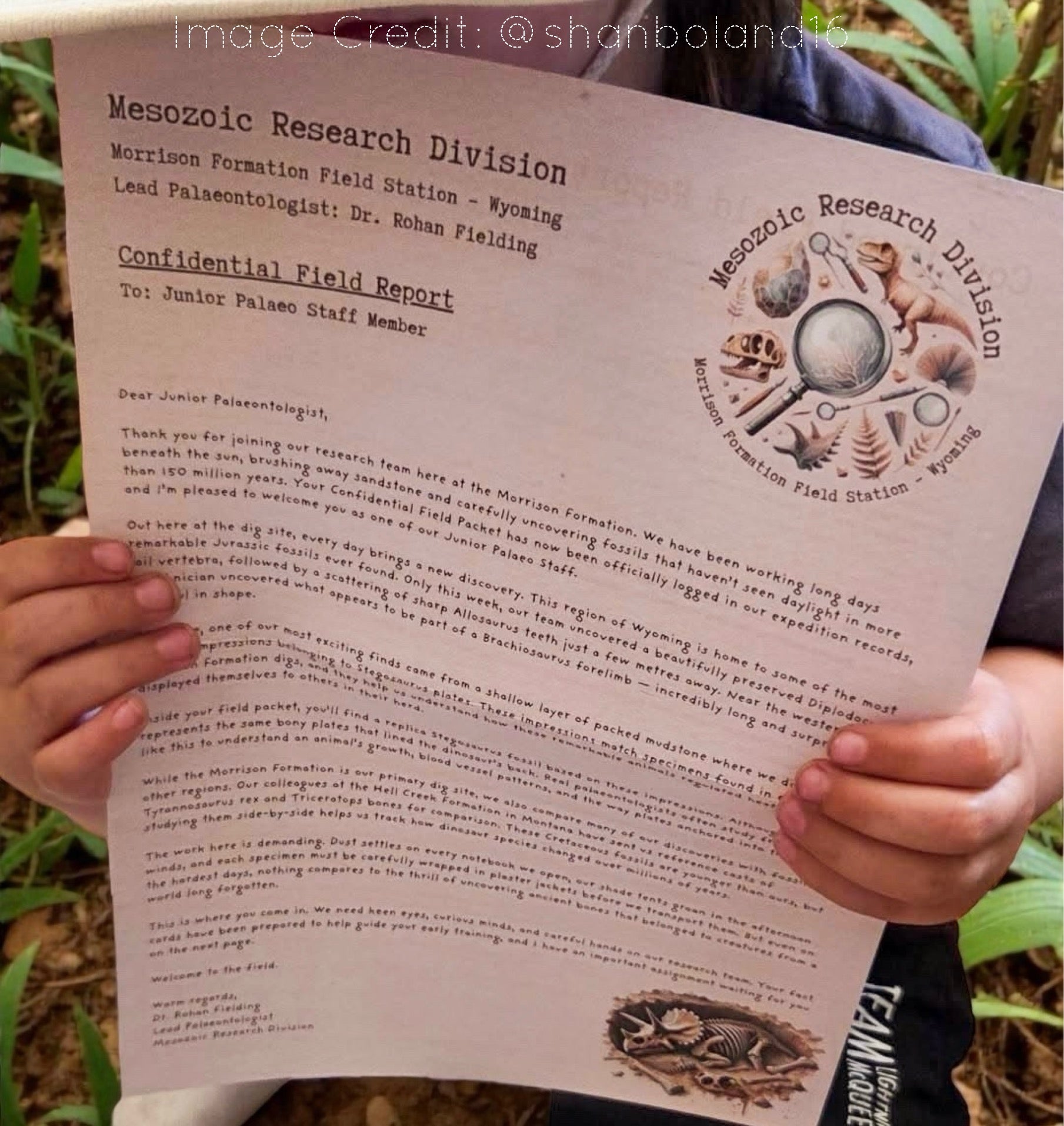 This immersive Junior Palaeontologist Field Packet invites children to step into the role of a young researcher, guided by an official two-page field report from Dr. Rohan Fielding, Lead Palaeontologist at the Mesozoic Research Division.